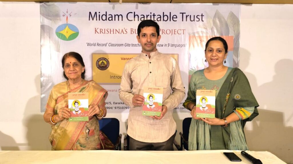 In 2023, the “Krishna’s Butter” team, consisting of 11 teachers from across India, led by Midam Charitable Trust President Madhusudan Damleji, set an assist world record by unveiling the first Sanskrit medium Bhagavad Gita Teaching Module for children.