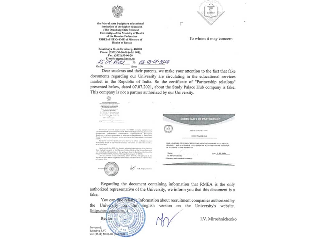 Orenburg State Medical University Issues Warning About Fake Documents Circulating in India